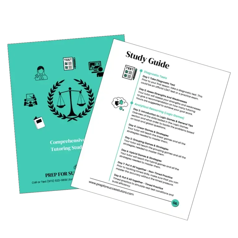 By clicking “Download LSAT Study Guide”, I consent to join the email list and receive SMS from Prep For Success Tutors, with access to our latest offers and services. Message and data rates may apply. Message frequency varies. More details on this are in our Privacy Policy and Terms and Conditions. Text "HELP" for help or contact us at 973-566-5379 . Text "STOP" to cancel.